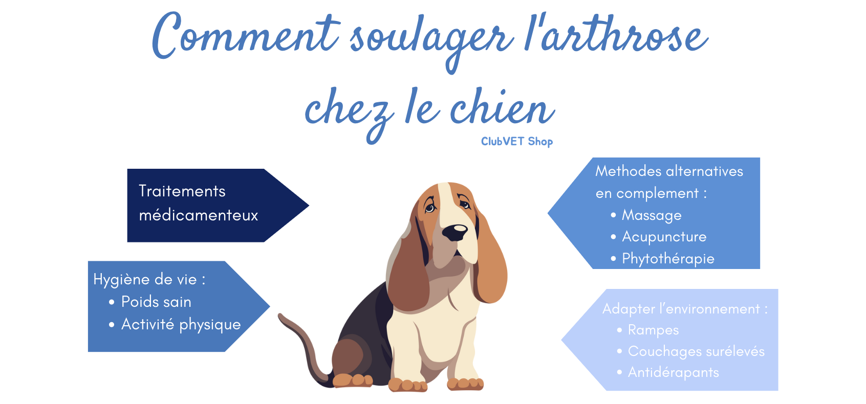 Il existe plusieurs moyens pour soulager la douleur arthrosique de votre chien, comme un contrôle satisfaisant du poids, des médicaments antalgiques et de la physiothérapie.